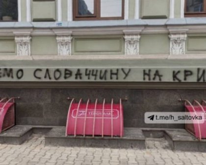 4 марта в Харькове неизвестные оставили надпись на здании консульства Словакии в ответ на скандальный шутку премьер-министра страны Игоря Матович.