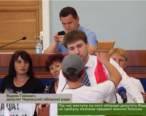 Депутату Черкасского областного совета депутату Вадиму Гаевичу подарили красные женские трусы.