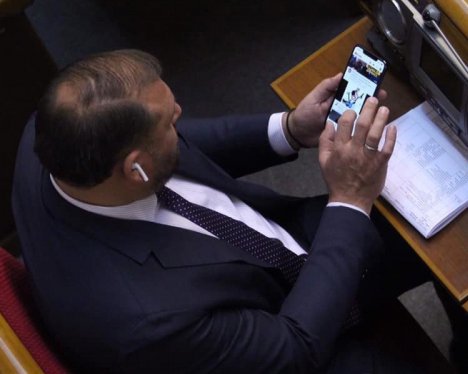 Народный депутат от фракции «Оппозиционный блок» Михаил Добкин на пленарном заседании рассматривал в телефоне велотренажер.