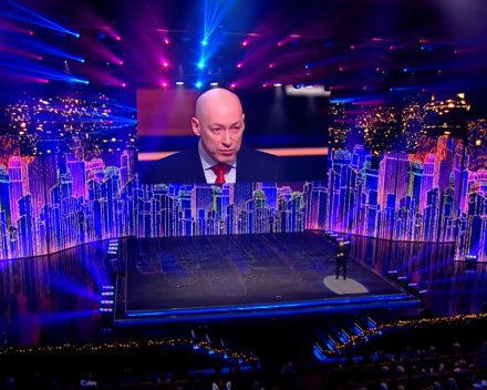 Студія «Квартал 95» у новорічній програмі показала пародію на Дмитра Гордона і його дружину Олесю Бацман.