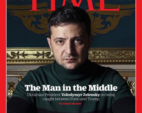 Президент Украины Владимир Зеленский появился на обложке американского журнала Time от 16 декабря. На обложке также написано «Человек на распутье. Украинский президент Владимир Зеленский о том, как быть между Путиным и Трампом».