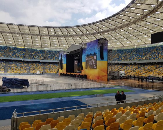 На стадионе установлены две сцены — для Порошенко и Зеленского.