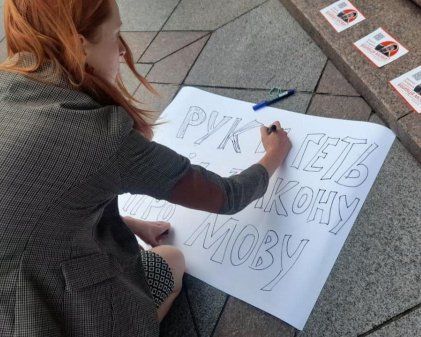 В понедельник у здания, где заседают комитеты Верховной Рады, граждане собрались на акцию протеста против попыток «Слуги народа» отменить переход на украинский язык с 16 июля всех фильмов и сериалов, которые транслируются на телевизионных каналах. Об этом сообщил УНІАН