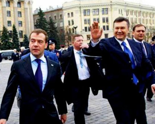 Рядом Медведев, сзади — Добкин. 10 лет назад Янукович сдал Крым