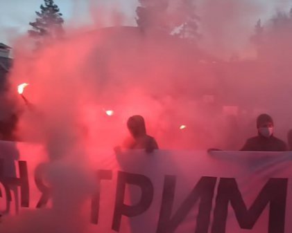 Активисты скандировали «Стерненко волю, Рифмастеру волю», громко включили музыку, использовали дымовые шашки и файеры.