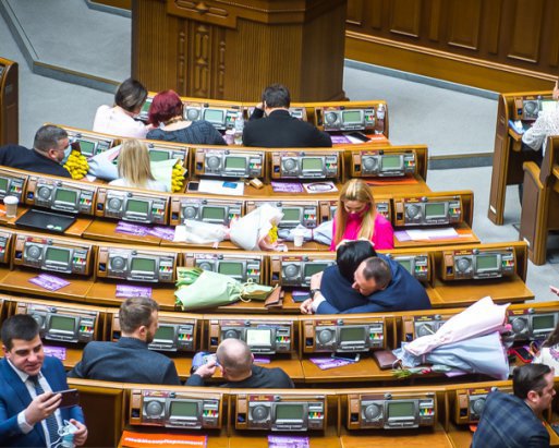 В пятницу народным депутатам-женщинам в сессионной зале дарили букеты.