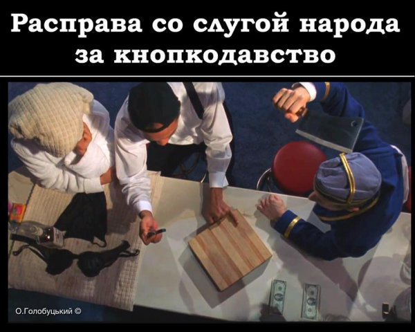 «Расправа со слугой народа за кнопкодавство», — говорится в подписи к кадру.