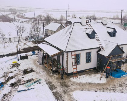 Майстри штукатурили, оздоблювали зовнішні стіни, закінчували внутрішні роботи. Відновлювали пічки і укладали дерев’яну підлогу.