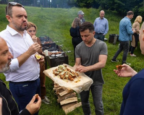 Также в сети Facebook появилось фото, где с президентом едят шашлык Дмитрий Гордон, бывшие ведущие прокремлевских телеканалов, связанных с нардепом от ОПЗЖ Виктором Медведчуком, NewsOne Василий Голованов и «Zik» Наталья Влащенко, ведущий с телеканала «Україна» Савик Шустер.